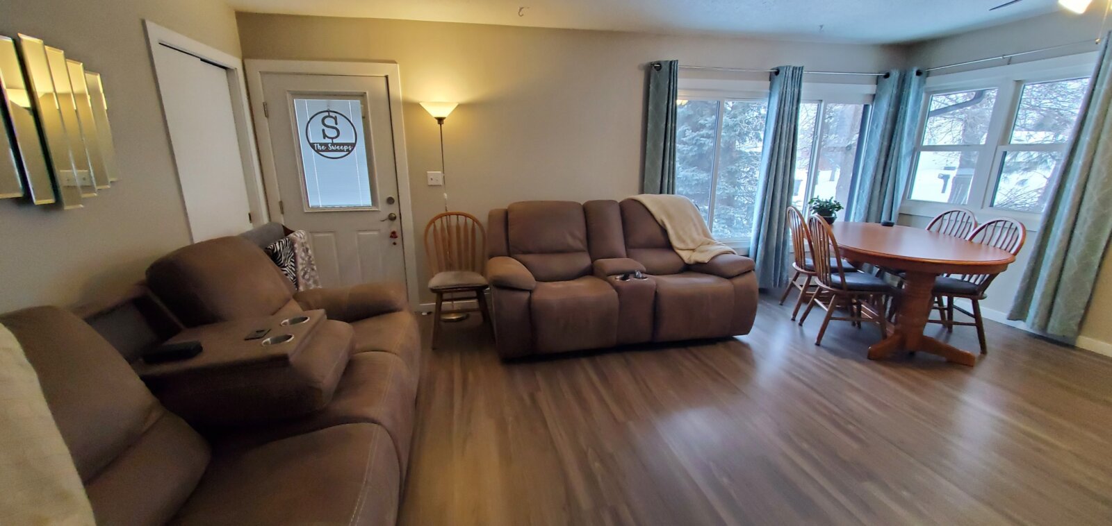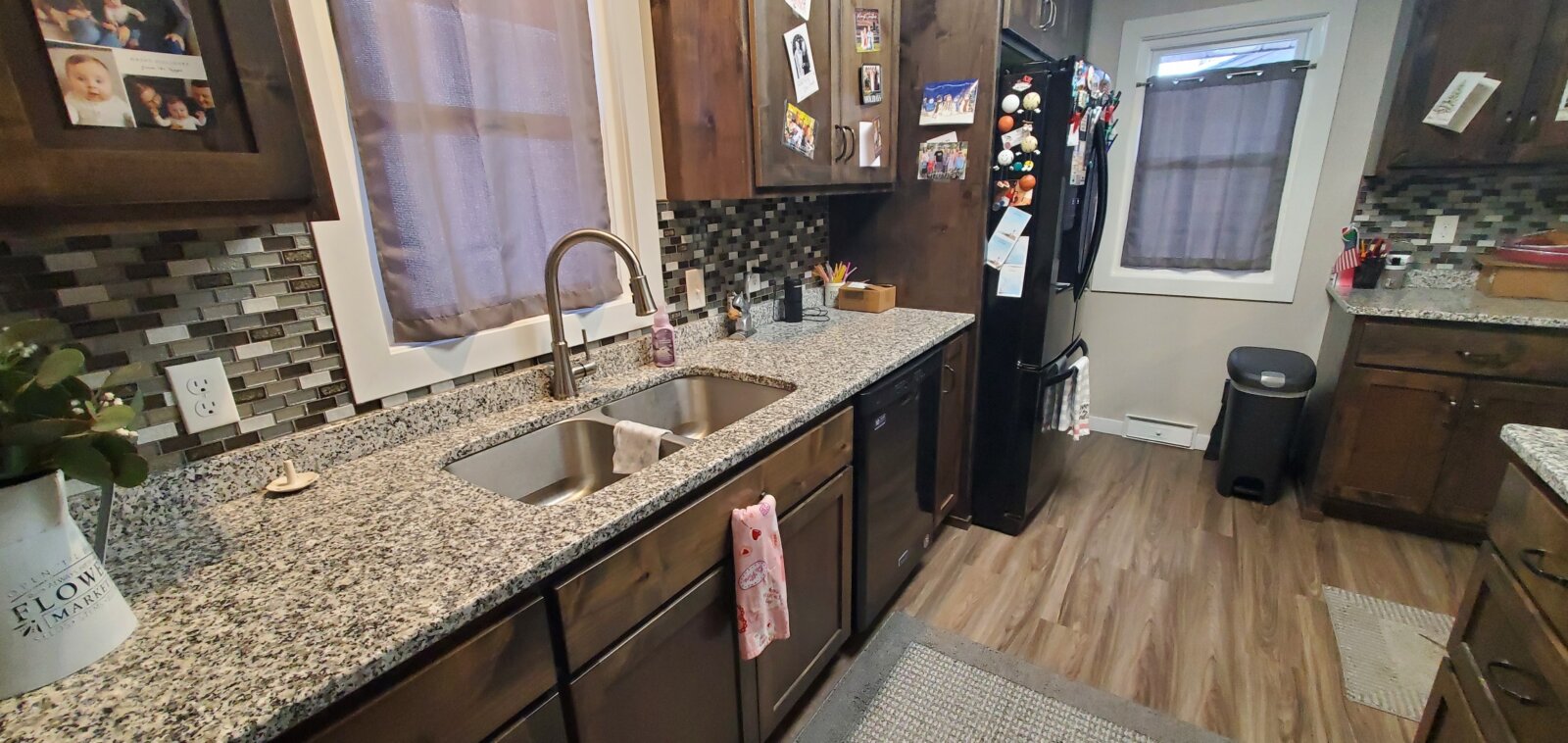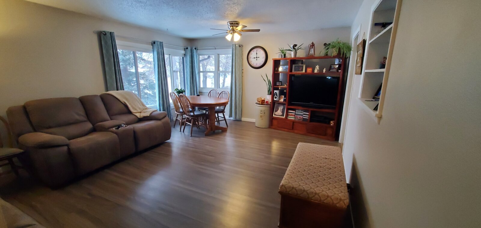 Sitting on a corner lot with double stall garage, 3 bedrooms, 1 non legal bedroom, 2 bathrooms, main floor laundry and great family rooms spaces…..plus NEW windows all for under $300k this property will not last long. The property features two decks which have both been redone and the house comes with all appliances, wash, dryer, additional fridge and a chest freezer. Gas forced air, central AC for both summer and winter comforts. Great storage room and extra built in areas in garage for all of your extras.