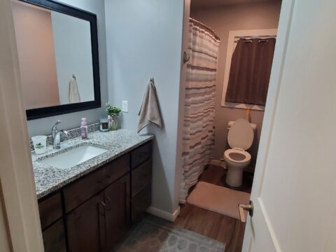 This house has been fully renovated on the interior with new kitchen cabinets, appliances, granite counter tops. Both bathrooms have been redone with the tub or showers, lights, flooring, vanities with granite counter tops as well. The entire house has new flooring, new carpet, new interior paint and ready for you to move right in.
