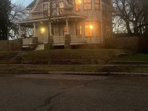 Front deck, Side Deck, Upper Deck, Fenced Yard, Formal Dining Area, New Roof, Tool Shed, detached 3 Stall garage/shop. New Mini-split systems installed, new baseboard heaters, new paint, flooring. House features fireplace in great room and much of the original woodwork throughout house. Unique touret corner of great room and upper owners suite. All bedrooms upstairs, upper level features bathroom, three bedrooms plus the owner's bedroom with bathroom suite. Main floor includes guest bathroom, kitchen, dining area, formal dining room, great room, grand entry with breezeway and grand staircase with chandelier. Fenced yard with new landscaping, shrubs and flowers.