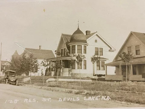 This historical home in Devils Lake is freshly remodeled August 2025. This amazing and unique property features three Decks (Front, Side, Upper) and privacy Fenced Yard, detached 3 Stall garage/shop. Included is the Tool Shed/Garden shed for lawn care items. The property as already had New Mini-split systems installed, two new decks, new fence installed, 3 full bathroom remodels, new baseboard heaters, new shingles on half of home, new paint, flooring completed. Additional updates being done with carpet, flooring, bathroom remodels and kitchen updates.
